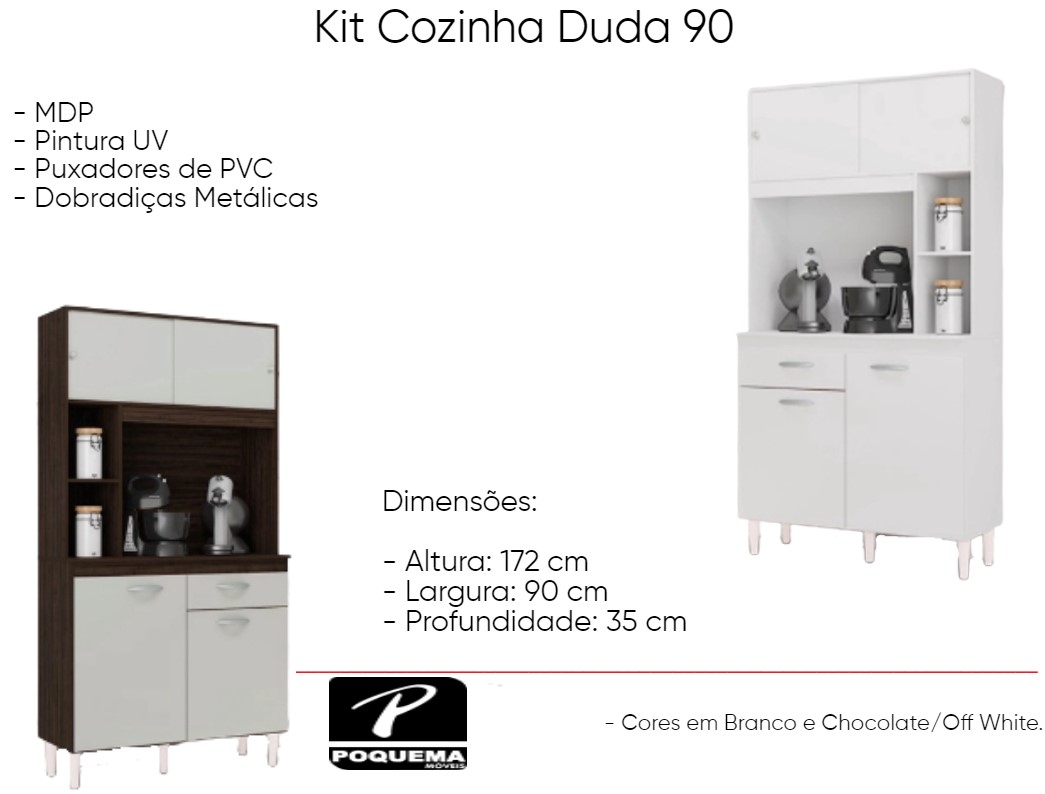 Armário de Cozinha 4 Portas 1 Gaveta Duda 90cm