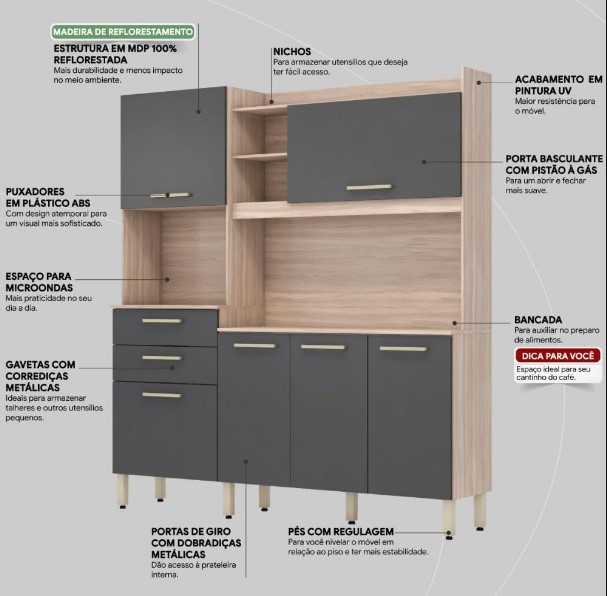 A Cozinha Select é a solução perfeita para quem busca organização aua cozinha. Com um design pensado para harmonizar seu ambiente, ela combina funcionalidade e beleza.