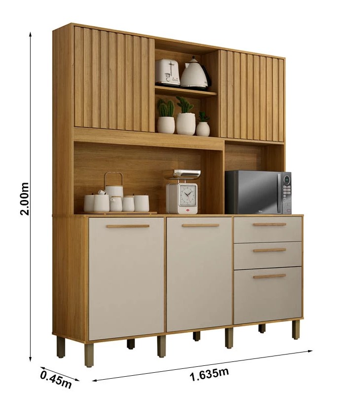 Preparar receitas especiais para a família e os amigos fica ainda melhor quando o espaço está organizado, né? Conte com o Armário de Cozinha Diamante 5 Portas 2 Gavetas Valdemóveis para levar ainda mais praticidade e estilo à sua rotina com portas ripadas. Espaçosa, ela oferece portas e gavetas para você acomodar potes de mantimentos, panelas, pratos, talheres, enfim, todos os itens que utiliza para cozinhar diariamente – além disso, também pode receber eletrodoméstico ou servir de apoio para picar alimentos.