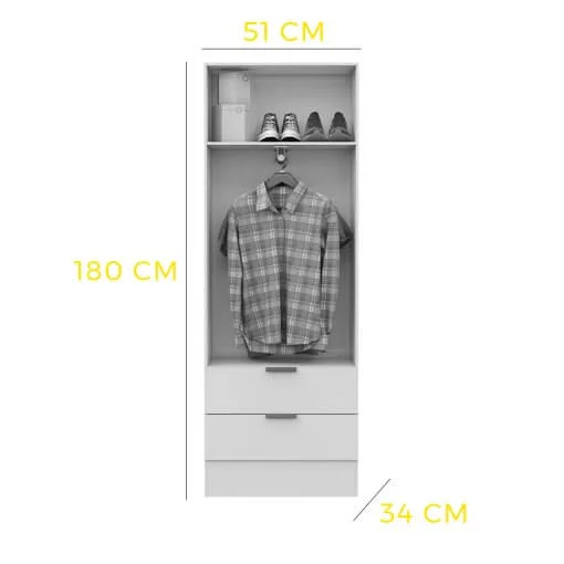 – Altura: 180 cm – Largura: 51 cm – Profundidade: 34 cm |