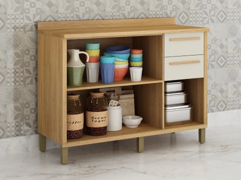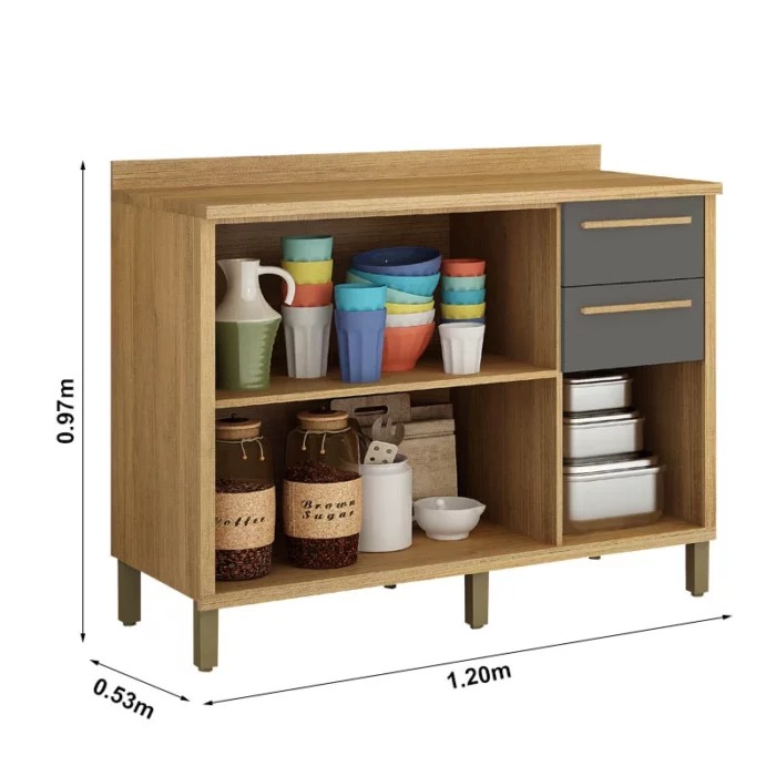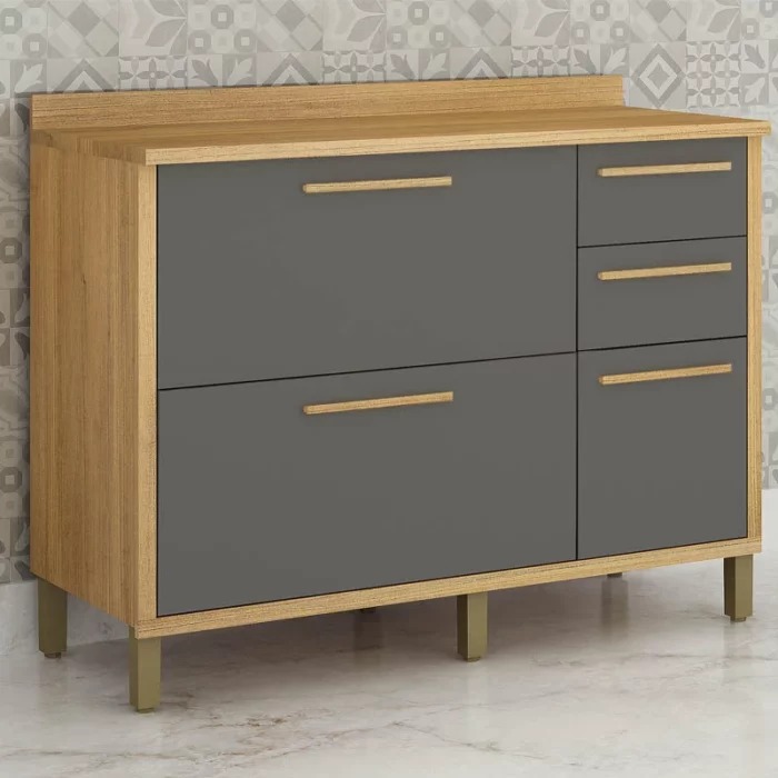 Balcão Torino 3 Portas 2 Gavetas para Cozinha 120 Cm Valdemóveis.