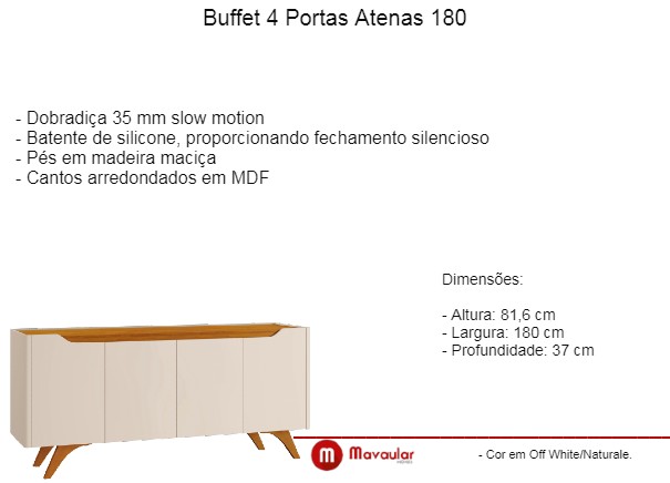 Batente de silicone, proporcionando fechamento silencioso ,Cantos arredondados em MDF ,Dobradiça 35 mm slow motion ,Pés em madeira maciça |