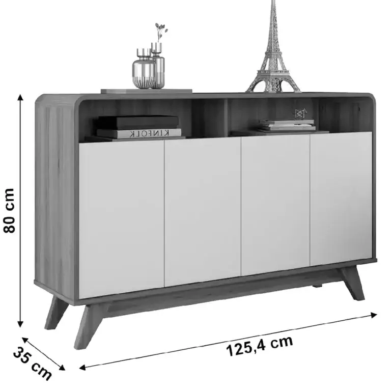O modelo oferece um amplo espaço interno com suas quatro portas, permitindo que você organize louças, travessas, copos, toalhas de mesa e outros itens essenciais com praticidade. Mantenha seu ambiente sempre arrumado e com tudo ao alcance das mãos.