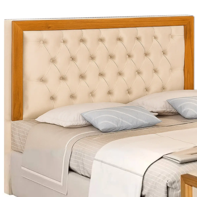 | Material | Madeira Eucalipto Reflorestada, Acabamento da moldura trabalhado na Madeira Maciça, Estofada com espuma de poliuretano D23, Botões encapados na mesma cor do revestimento |