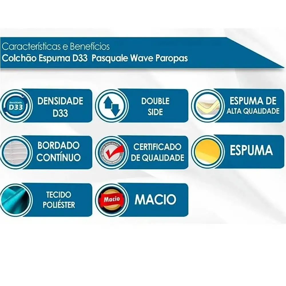 Colchão Casal Pasquale Wave D33 – 17 cm de Altura | 188 x 138 cm – Paropas