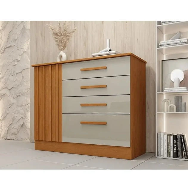Cômoda Guarani Ripado 4 Gavetas 1 Porta Tcil