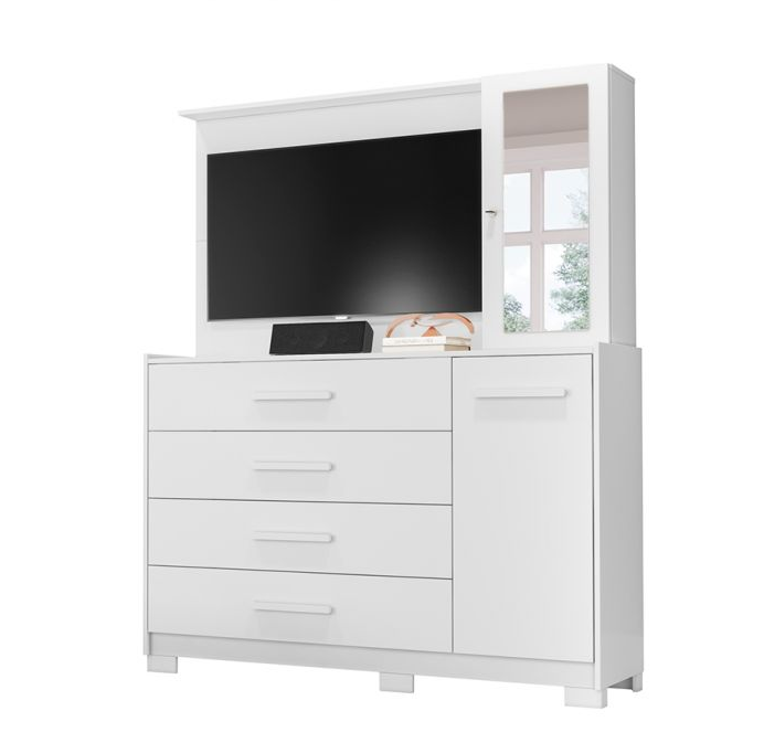 Cômoda Ilhabela com Painel para TV 4 Gavetas 2 Portas e Espelho Albatroz