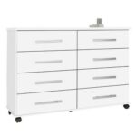 Cômoda Jade com 8 Gavetas Corrediça Telescópica e Rodinhas
