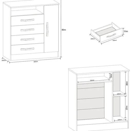 Cômoda Sapateira Delta 4 Gavetas 1 Porta Atualle