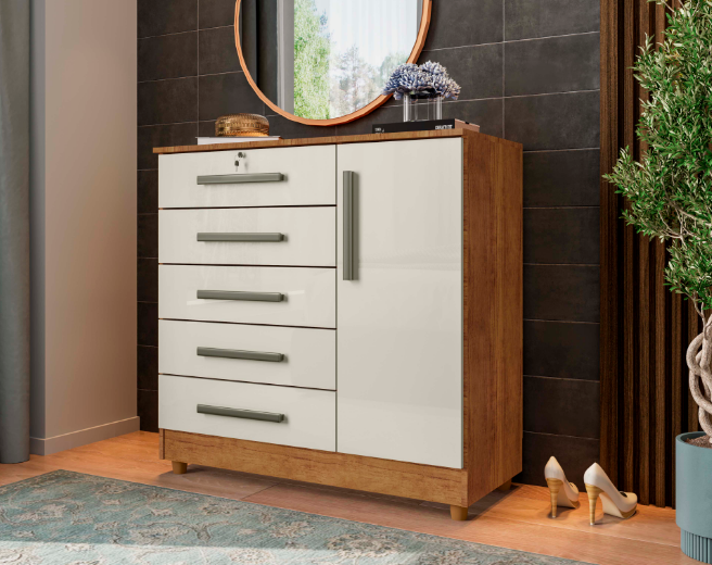 Cômoda Vitória 5 Gavetas 1 Porta Rud Rack