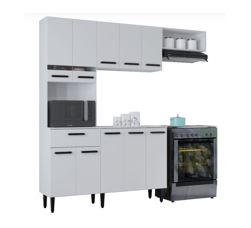 Procurando por um armário moderno e espaçoso que irá agregar beleza e sofisticação a sua cozinha? conte com o Armário Cozinha Dora Composto por paneleiro,aereo e balcões bastante espaço interno para você deixar seus pertences muito bem organizados que proporcionam maior abertura. Venha conferir!