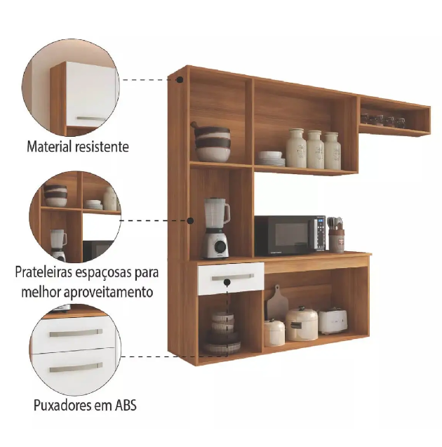 O acabamento confere um charme especial a esta cozinha, destacando-a como o centro das atenções em qualquer ambiente. E o melhor de tudo é que, além de ser linda, a Cozinha Suspensa Belíssima 6 Portas 1 Gaveta Fiorello é super resistente e durável, garantindo que você possa desfrutar dela por muitos anos.