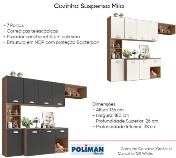 Cozinha Suspensa Mila 7 Portas 1 Gaveta Poliman