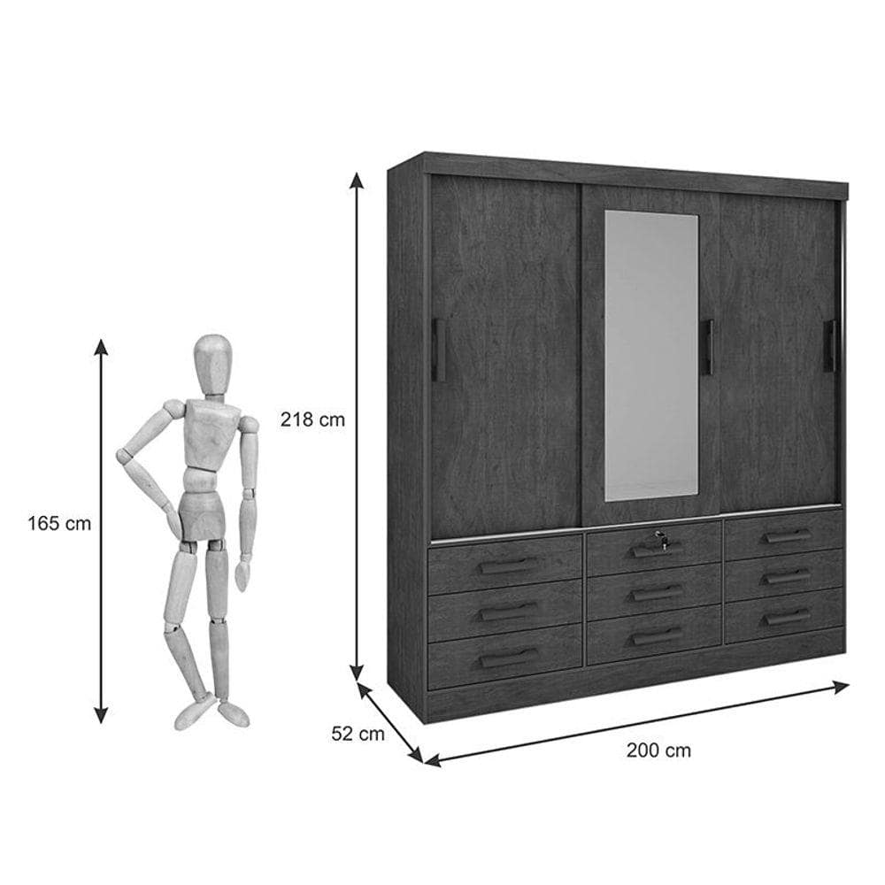 Guarda Roupa 3 Portas 9 Gavetas com Espelho Meridian D Doro