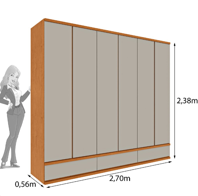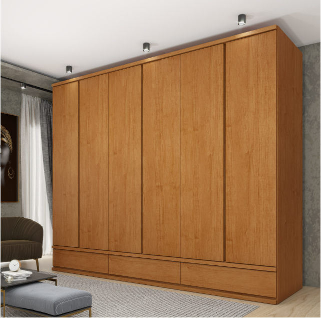 O Guarda Roupa Esparta veio para agradar todos os gostos. Procurando elegância modernidade e sofisticação para o seu quarto? Este é o produto que irá te oferecer essas qualidades. Produto fabricado em MDP e MDF com 6 portas, possui excelente espaço interno bem distribuido, oferecendo máxima organização de forma prática. Suas gavetas possuem corrediças telescópicas que traz uma maior sofisticação para o guarda roupa e também proporciona um mecanismo silencioso para abrir e fechar as gavetas. Parte interna é na cor do produto, escolha a que melhor combina com você e seu quarto. Garanta já o seu.