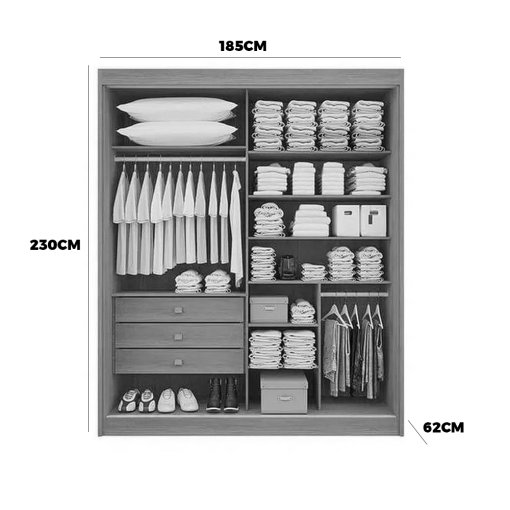 O modelo é perfeito para um quarto individual. Tem 2 portas e 3 gavetas, ou seja, espaço de sobra para organizar suas roupas, sapatos, e o que mais você quiser guardar!