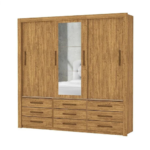 – Estrutura em MDP – 3 portas de correr – 9 gavetas externas – Espelho na porta central – Puxadores exclusivos – Cabideiros e prateleiras internas |