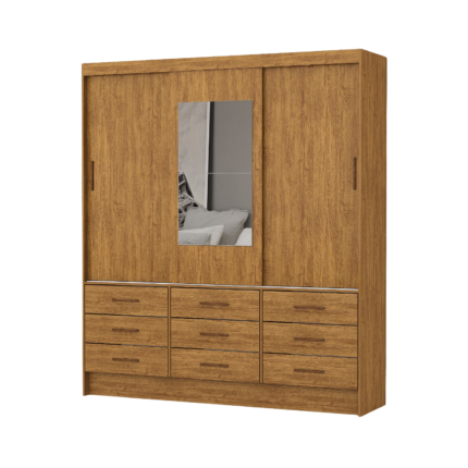 Guarda Roupa Casal 3 Portas de Correr e 4 Gavetas c/ Espelho Capri Bianchi