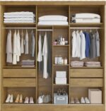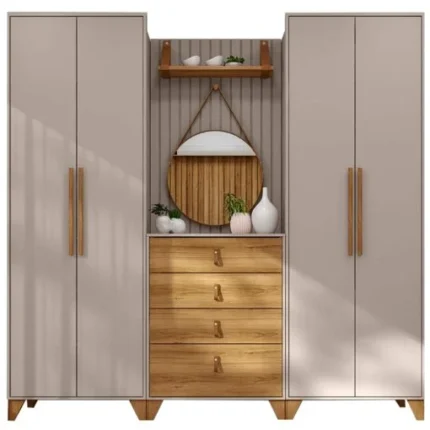 – Gavetas com corrediças telescópicas. ,Cabideiro alumínio ,Puxador madeira |