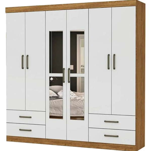 Guarda Roupa Hercules com 6 Portas 4 Gavetas e Espelho