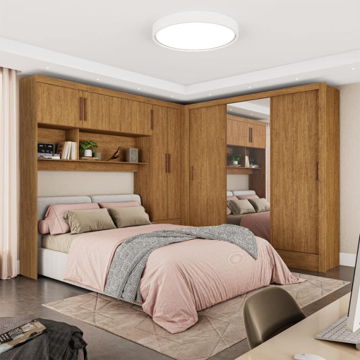 O conjunto é composto por um Guarda Roupa Modulado Carioca 5 Portas 2 Gavetas combinado com um Guarda Roupa Santiago Casal 3 Portas 3 Gavetas Carioca. Ou seja: tamanho suficiente para guardar todas as roupas, sapatos e acessórios em um único lugar, este guarda roupa modulado será o herói do seu quarto!