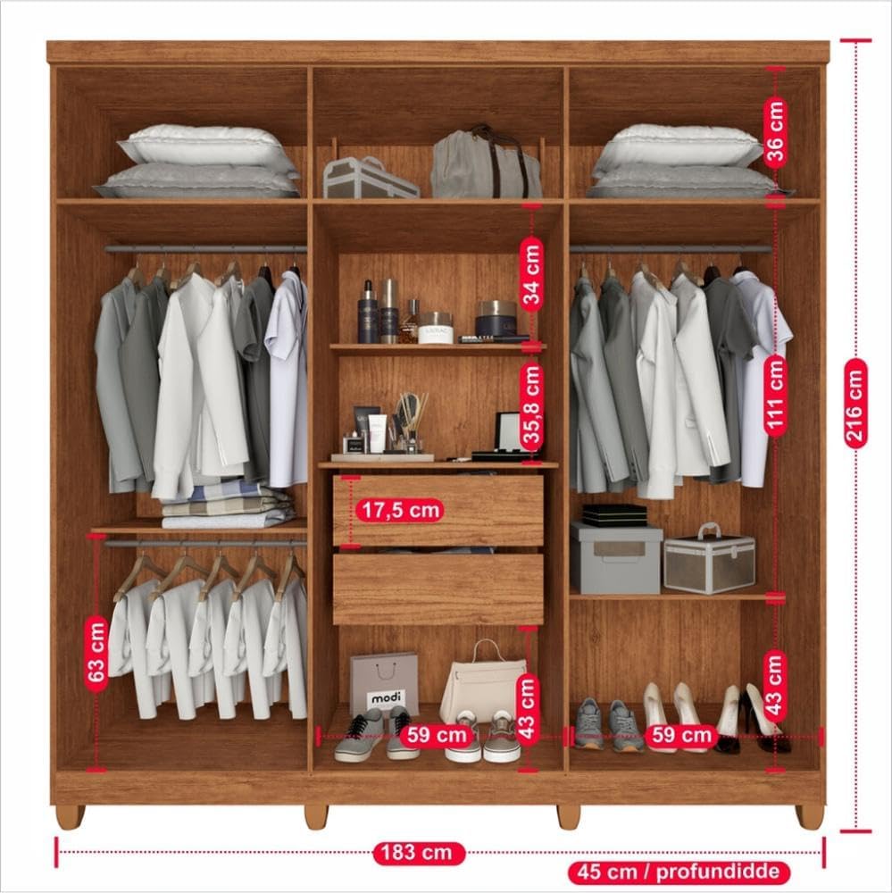 Então, se você quer um guarda-roupa que seja tão espaçoso quanto charmoso, esse modelo é a escolha perfeita para você!