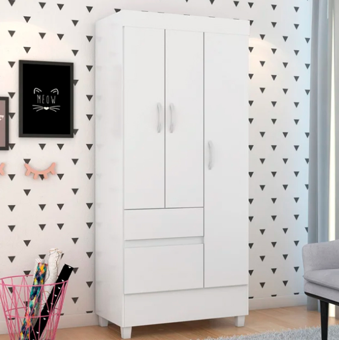 O Guarda Roupa Windé a peça perfeita para quem deseja armazenar e organizar . Com suas tres portas, ele oferece área para pendurar roupas, guardar peças maiores e organizar seus pertences de forma eficiente. As duas gavetas espaçosas complementam a funcionalidade, sendo ideais para acomodar itens menores, como roupas íntimas, meias ou acessórios, mantendo tudo arrumado e de fácil acesso.