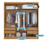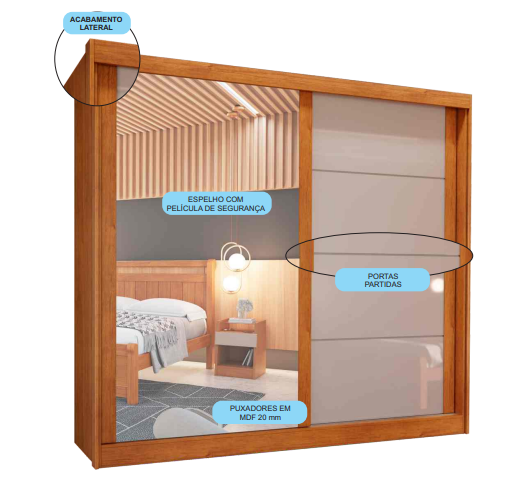 – Gavetas com corrediças telescópicas. ,Cabideiro alumínio ,MDP/MDF ,Puxador em MDF |
