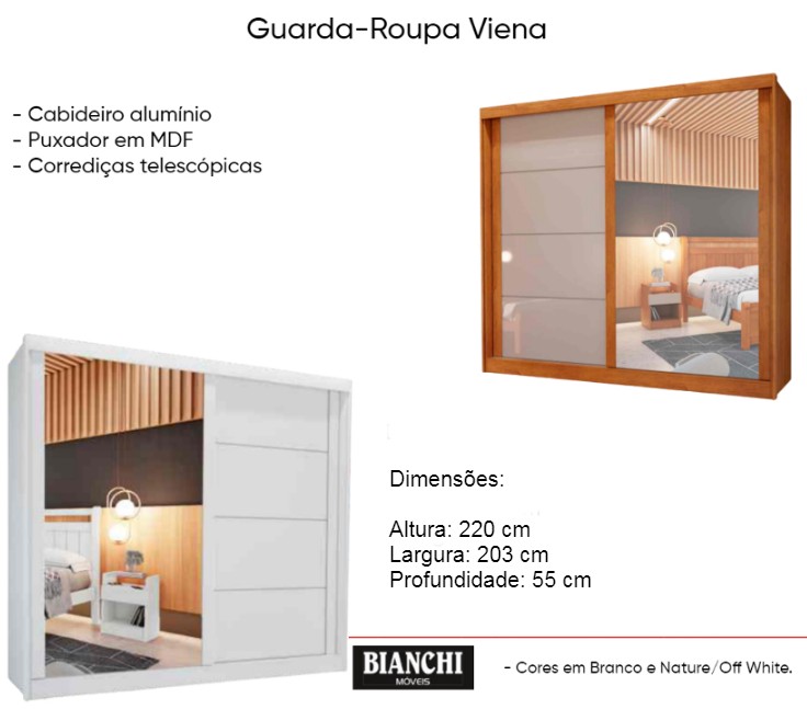 Guarda Roupas 2 Portas de Correr 1 com Espelho Viena Bianchi Móveis