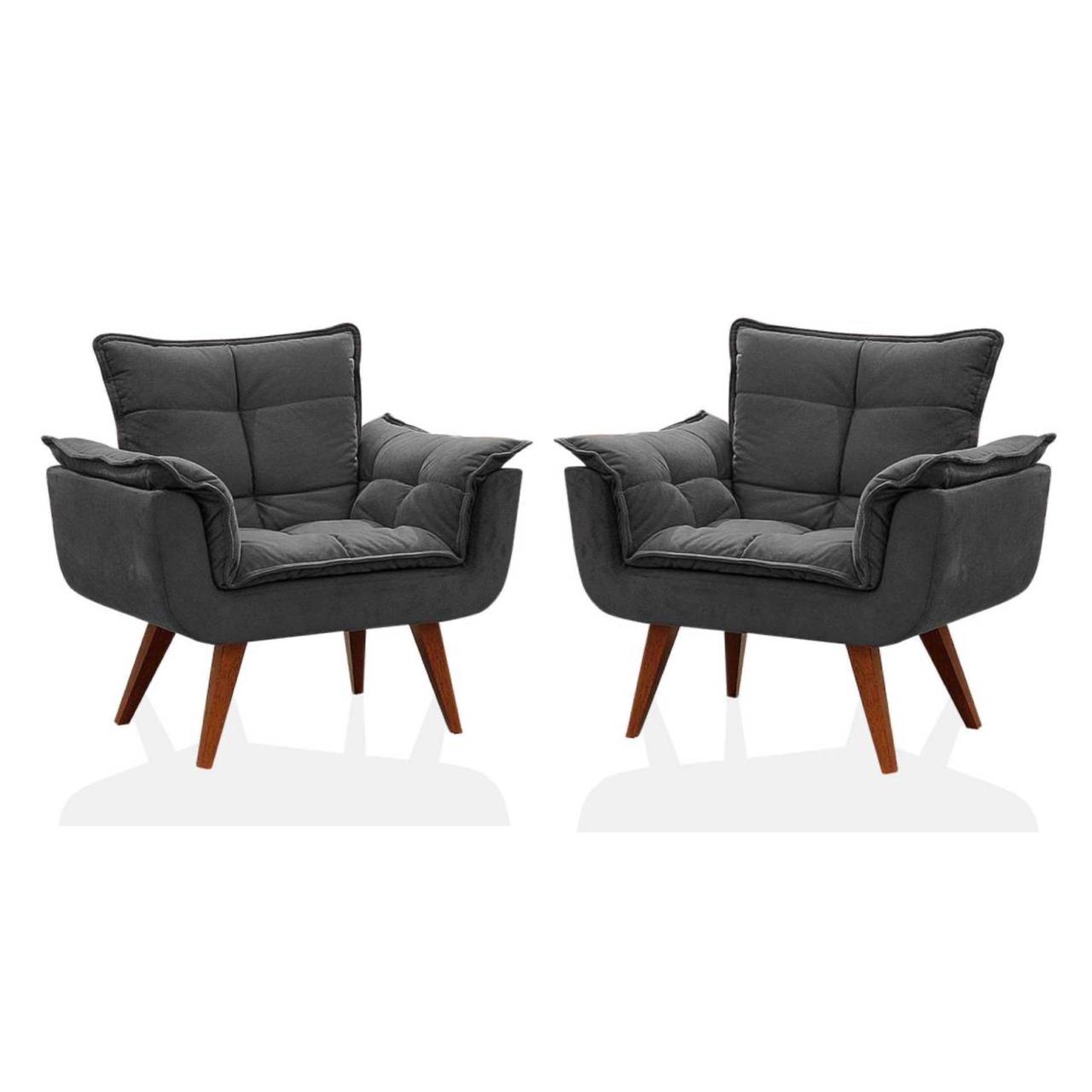 KIT 02 Poltrona Opalla Suede Pés Palito My House Decor