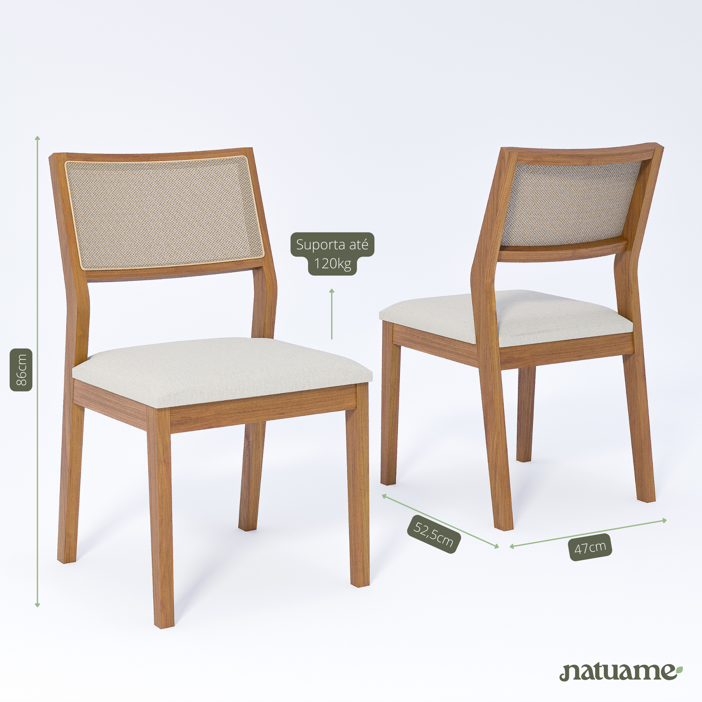 Kit 2 Cadeiras Oiti Natuame Madeira Tauri Tecido Linho Cimol