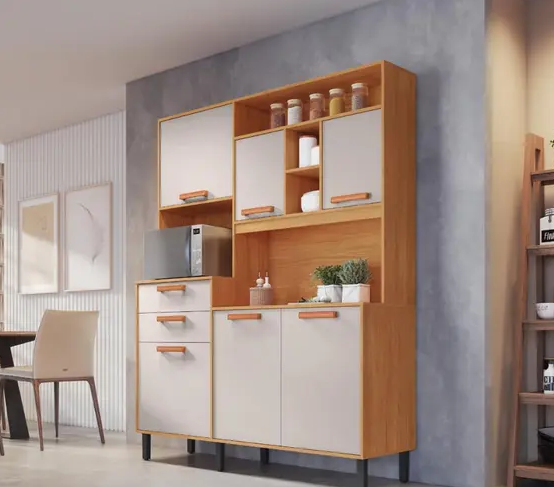 E mais, essa linda cozinha oferece um design bem atual, prateleira fixa para melhor aproveitamento do móvel e uma coloração incrível capaz de se adaptar em diferentes tipos de decoração.