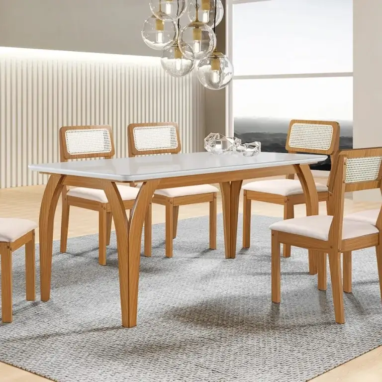 Ideal para salas de jantar amplas ou espaços integrados, essa mesa é sinônimo de bom gosto e funcionalidade. Além de ser um móvel prático, ela contribui para criar um ambiente acolhedor e convidativo, tornando os momentos à mesa ainda mais especiais e confortáveis.