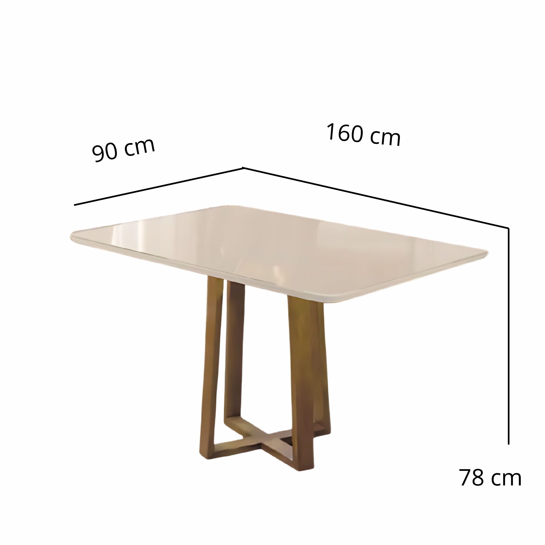 Seu tampo retangular é produzido em material resistente e acabamento refinado, enquanto a base em madeira traz elegância e estabilidade.