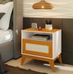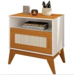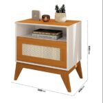 Com uma estrutura em MDP/MDF, esta mesa de cabeceira combina estilo e funcionalidade para elevar o seu espaço de descanso. Equipada com uma gaveta em tela Rathan Sintético e corrediças telescópicas, proporciona fácil acesso aos seus pertences.