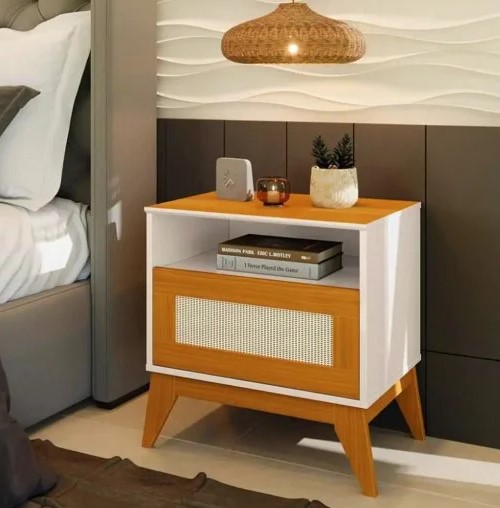 Renove o seu quarto com a Mesa de Cabeceira City 1 Gaveta EDN Off White Cedro!