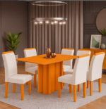 Seu visual clean se adapta facilmente a diferentes estilos de decoração, do minimalista ao mais clássico. A estrutura em madeira garante durabilidade e resistência por muitos anos de uso. Perfeita para refeições em família, jantares especiais ou para complementar a decoração do seu lar com bom gosto.