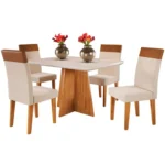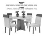O modelo é espaçoso o suficiente para acomodar a sua família e convidados, garantindo momentos gostosos ao redor da mesa. Além disso, o design elegante e minimalista da mesa e das cadeiras adiciona um toque de modernidade ao ambiente, sem comprometer o confort