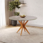 A mesa de jantar Simpatia COM Vidro Redonda 108×108 JCM redonda de madeira com tampo de vidro é uma escolha perfeita para quem busca um ambiente acolhedor e moderno. Seu design elegante combina tradição e contemporaneidade, tornando-a ideal para reuniões familiares ou jantares com amigos. A superfície de vidro proporciona uma sensação de amplitude e luminosidade, enquanto a base de madeira traz aconchego e durabilidade. Além disso, o formato redondo promove uma atmosfera de convivência, onde todos os convidados podem interagir de maneira mais íntima e confortável. É uma peça que une funcionalidade e estilo, perfeita para enriquecer qualquer espaço.