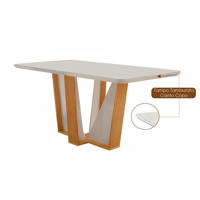 Mesa Veneza 135×90 Com Vidro Lj Móveis Cinamomo Off White