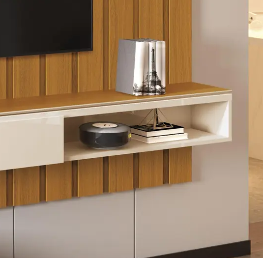 Os momentos de maior descontração em frente à TV ou em confraternizações com amigos em casa ocorrem na sala. O nicho Universal EDN surgiu para unir o útil ao agradável. Útil porque você otimiza o ambiente, e agradável porque confere beleza e modernidade. Podendo ser utilizado somente como nicho ou fixado ao seu painel