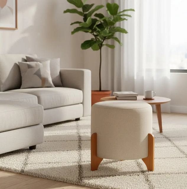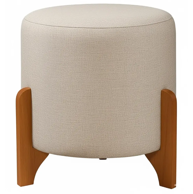 Puff Nara em Linho Redondo com Pés de Madeira RA