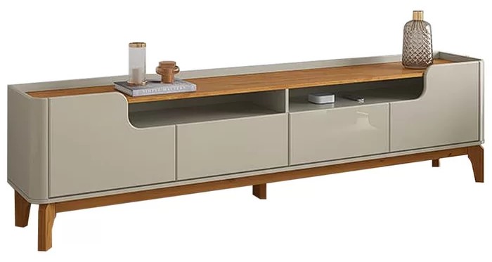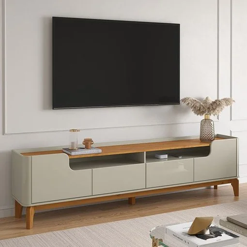 O Rack Flip 180cm 4 Portas para TV até 75 Polegadas Patrimar Off White Cinamomo é o móvel que faltava na sua vida. Com design moderno e elegante, essa belezinha vai transformar a sua sala.