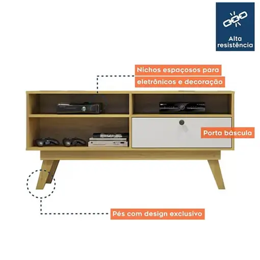 Rack Houston para TV até 50 Polegadas 1 Porta Valdemóveis Cinamomo Off White