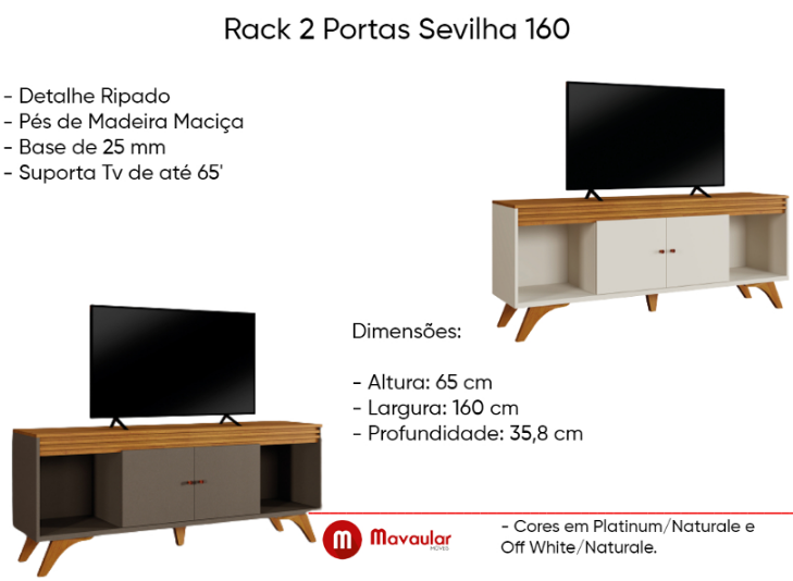 Rack Sevilha 2 Portas para TV até 65 Polegadas Mavaular