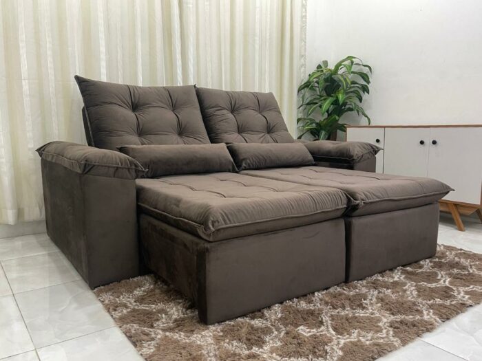 O sofá Antonelli Retrátil e Reclinável Tecido Veludo 200cm é um sofá de inúmeras qualidades: Ele é lindo, atraente, imponente, sinônimo de extremo conforto. Ideal para você que tem a família grande e gosta de receber os amigos em casa sem abrir mão da comodidade. O que chama atenção nesse modelo, além das características já citadas, é a ergonomia proporcionada pelo perfeito encaixe entre a parte inferior do encosto e a lombar, em conjunto com as molas bonnel do assento, gerando conforto para a coluna; o visual te convida para um ‘abraço’ macio e aconchegante.