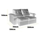 Altura: 105cm Largura: 200 m Profundidade Fechado: 110cm Profundidade Aberto:150cm |