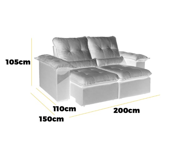 Sofá Arsenal 3 Lugares Retrátil e Reclinável 200cm Tecido Veludo Aifos