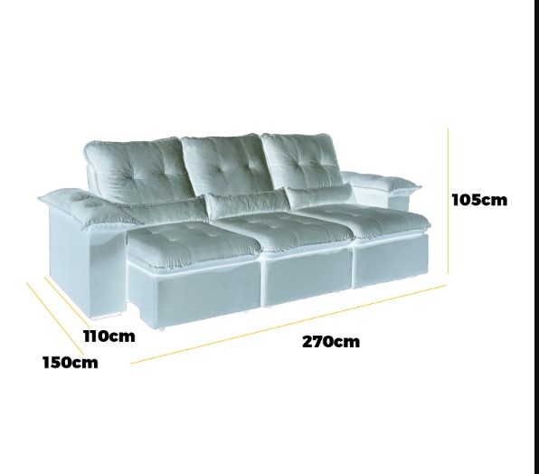 Altura: 105cm Largura: 270 m Profundidade Fechado: 110cm Profundidade Aberto:150cm |