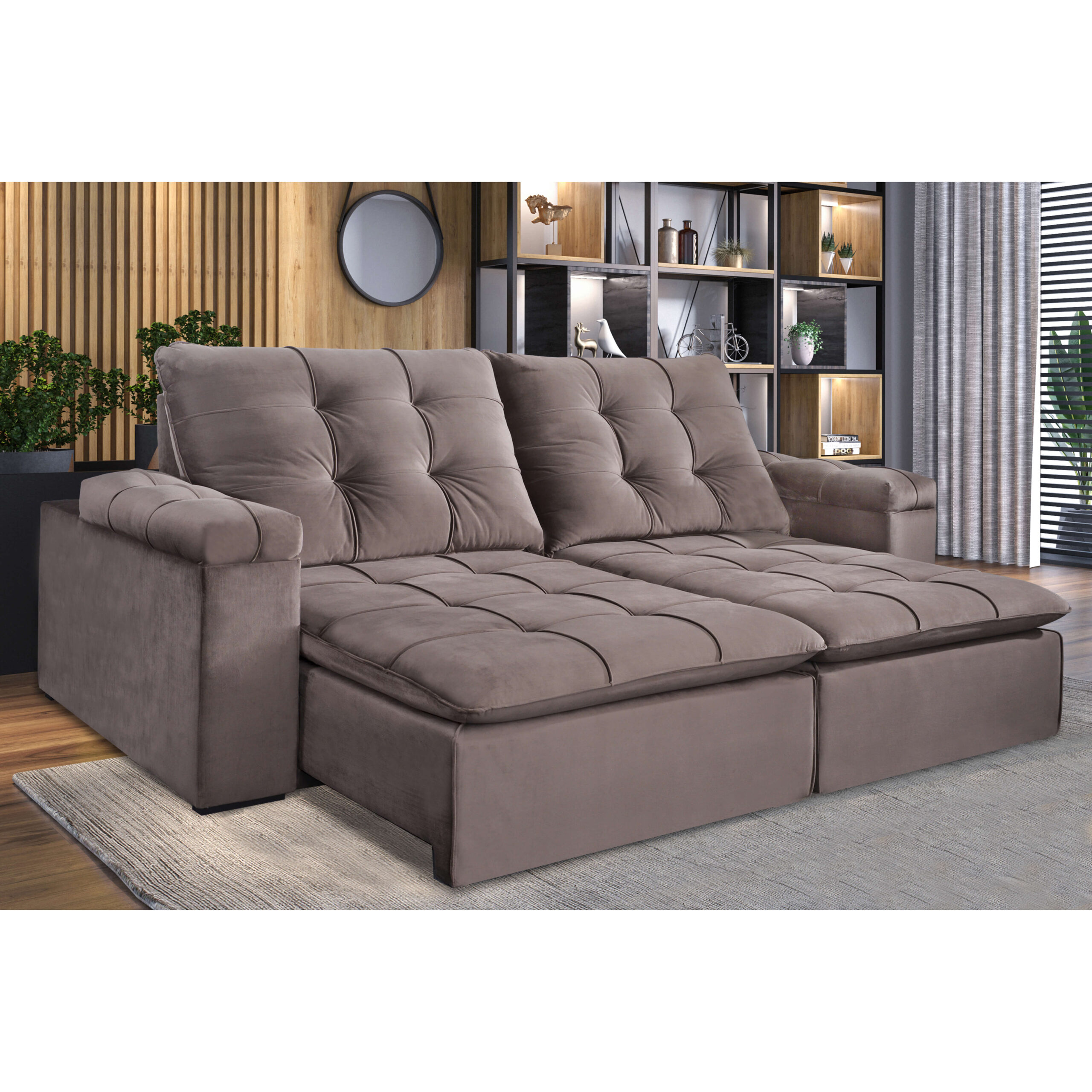 Sofá com Molas Ensacadas 4 Lugares Retrátil e Reclinável 250cm Colombia Tecido Veludo